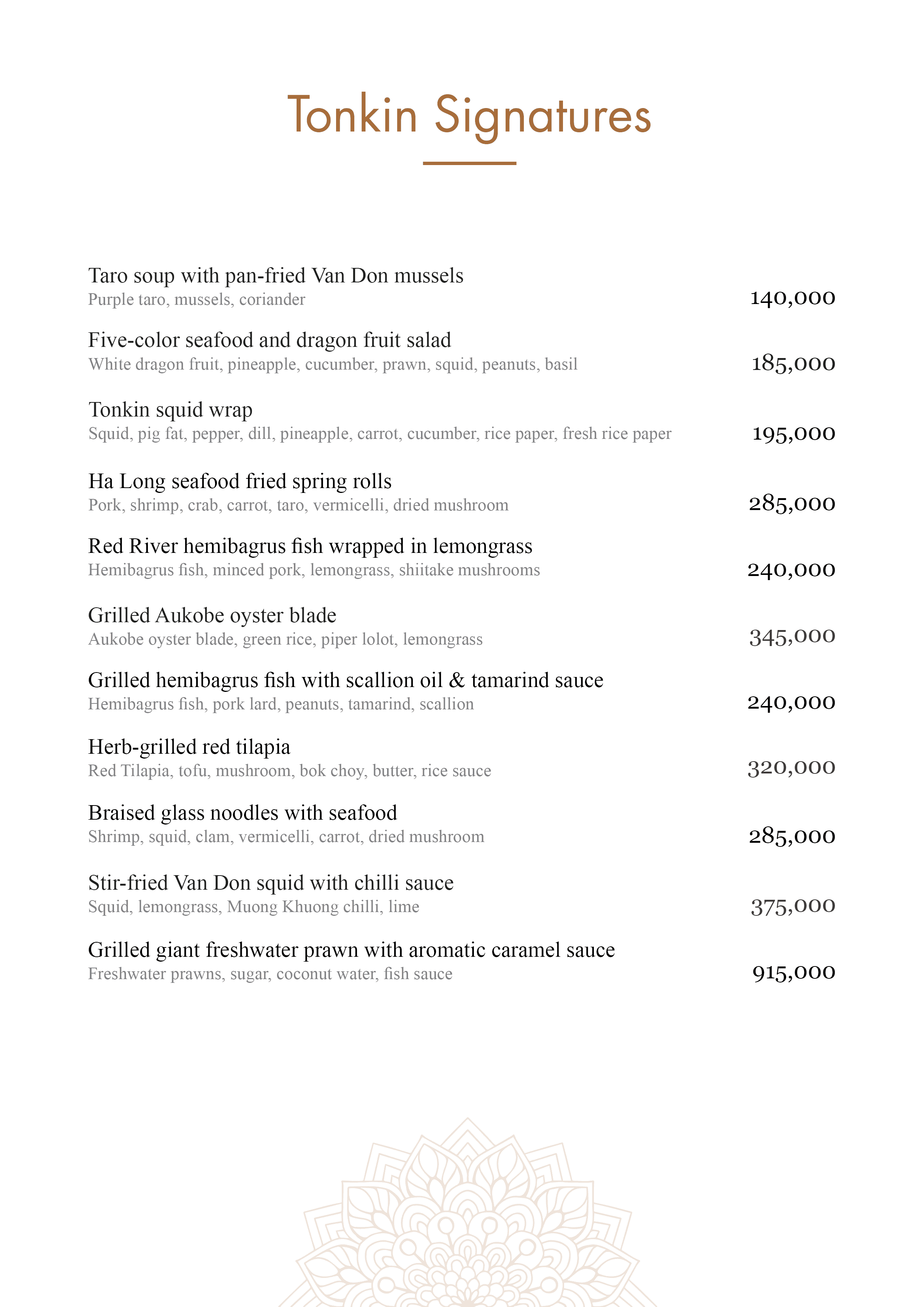 Menu The East Tonkin