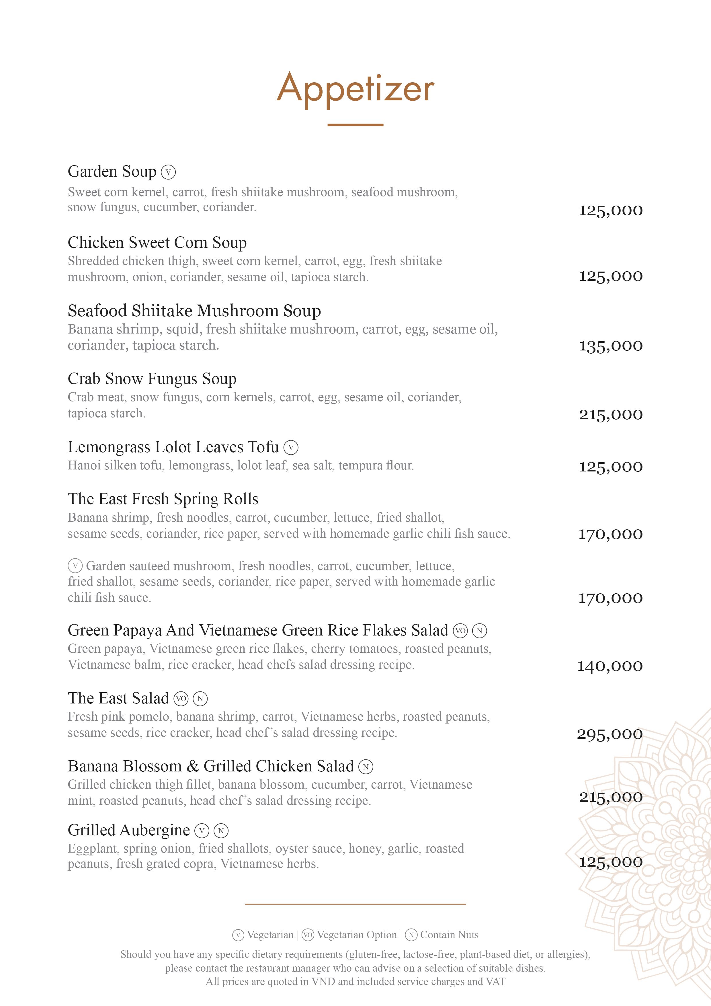 Menu The East Tonkin